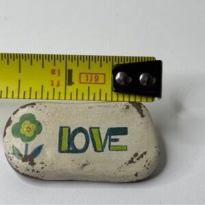 Love Hippie Vintage Brooch Pin Rock Flower Hand Painted 1970s 1980s Handmade