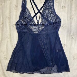Love Honey Navy Lace Chemise with Strappy Back Size XXL