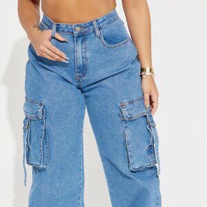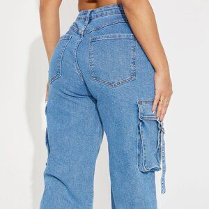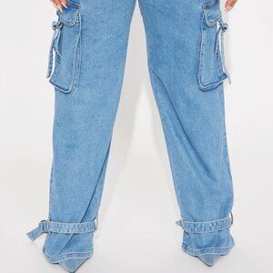 Love Hurts Ankle Strap Cargo Jeans || Medium Blue Wash