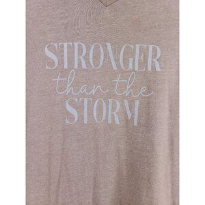 This set of two Love In Faith T-shirts showcases inspiring designs that merge faith with fashion. The black tee features a cross with the word "faith" and vibrant daisies, creating a striking and meaningful visual. The brown tee is emblazoned with the uplifting message "Stronger Than The Storm," offering motivation and comfort. Crafted from a blend of cotton and polyester, these shirts promise comfort and durability, while the machine-washable fabric ensures easy care. (P)