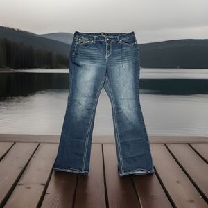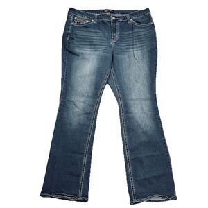 Love Indigo Bootcut Jeans Plus 18W (38x30.5) Blue Embroidered Stretch Womens