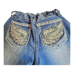 Love Indigo Denim CAPRI JEANS Women's 10P Stretch Rhinestone Angel Wing Pockets