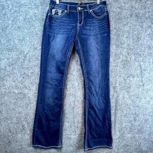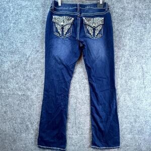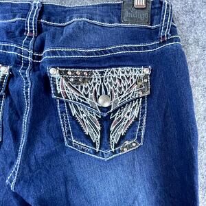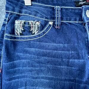 Love Indigo Jeans Womens 8 Blue Y2K Bootcut Flap Pocket Wings Embellished Rocker
