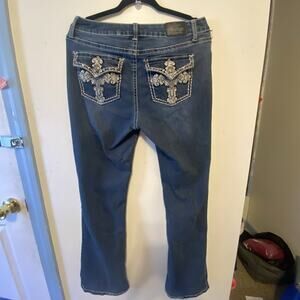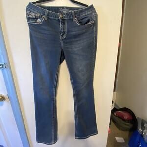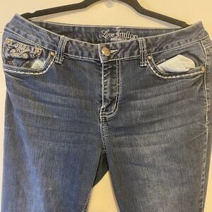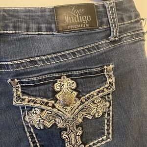 Love Indigo Premium Jeans Women 12 Embellished Denim Dark Blue Flare Y2K MidRise