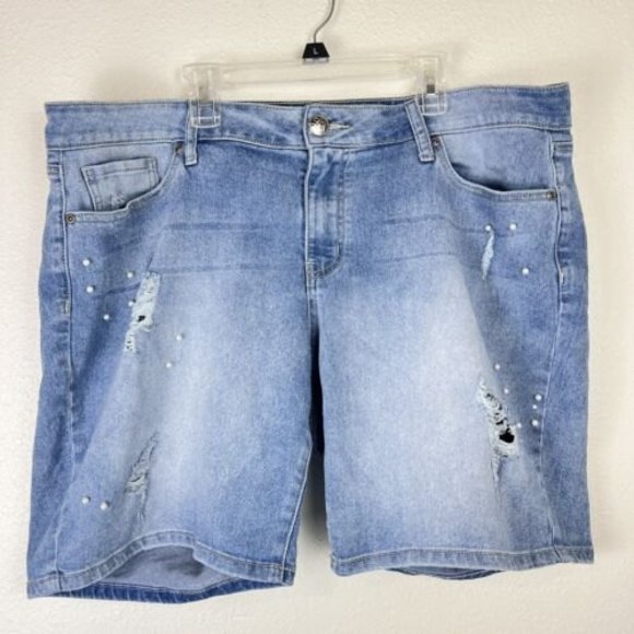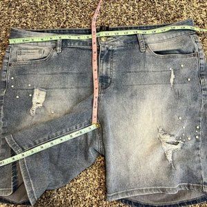 Love Indigo Size 16 Longer Length Embellished Distressed Denim Shorts Pearls