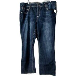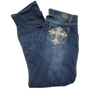 Love Indigo Womens Jeans Size 16 Blue Dark Wash Bootcut NWT Rhinestones Cross