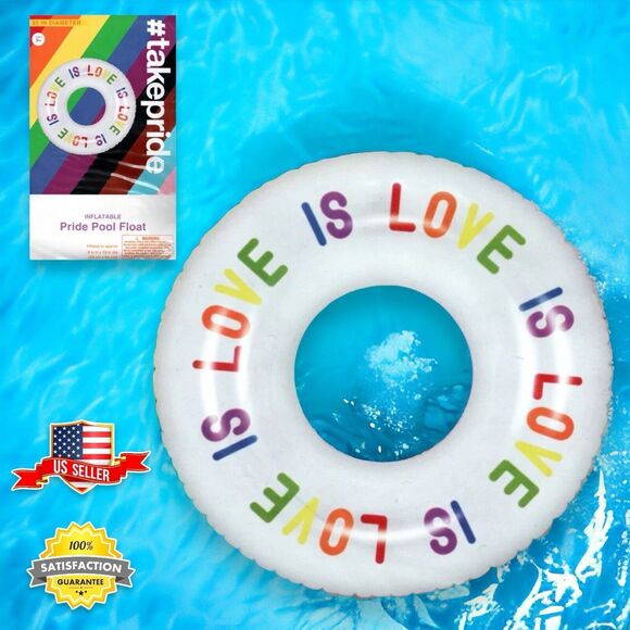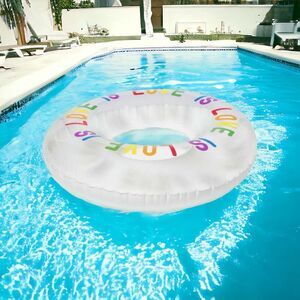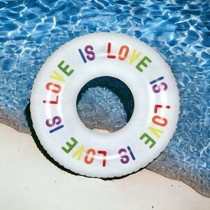 Show your pride with this inflatable pool float! This colorful rainbow donut-shaped swim ring is perfect for all ages 9 and up, and features a fun and colorful "Love Is Love" design. Made by #takepride, this LGBTQ Pride Pool Float is a must-have for your next pool or beach day. *Please note that this is a water play only and not intended to be used as a life saving device.