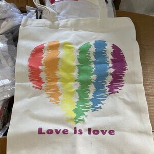 Love Is Love Rainbow Heart Tote Canvas Pride Bag LGBT Reusable Grocery 13x15 NWT