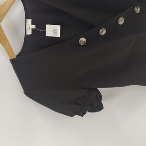 Love J Black Wrap Blouse With Button Detail Size Large Puff Short Sleeve