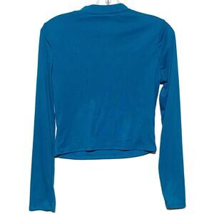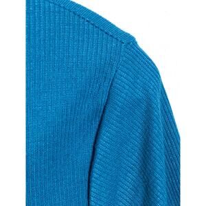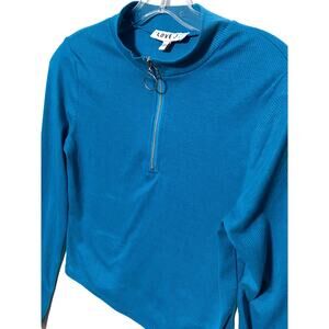 Love J Blue Ribbed Cropped Ring Pull Half Zip Sweater Pullover Womens L Y2K Casual Chic