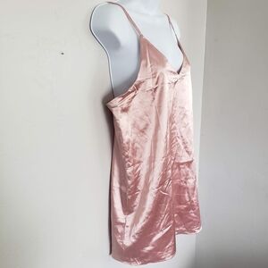 Love J Medium Light Pink Satin Mini Dress V-neck Spaghetti Straps