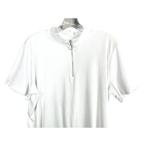 Love J Short Sleeve Quarter Zip White Rib Knit Top 2X NWT