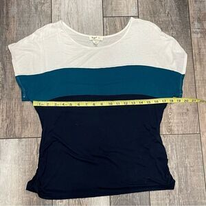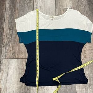 Love J Short Sleeve Color Block Striped Blouse Size Large Teal Navy Blue White