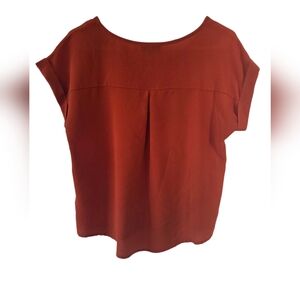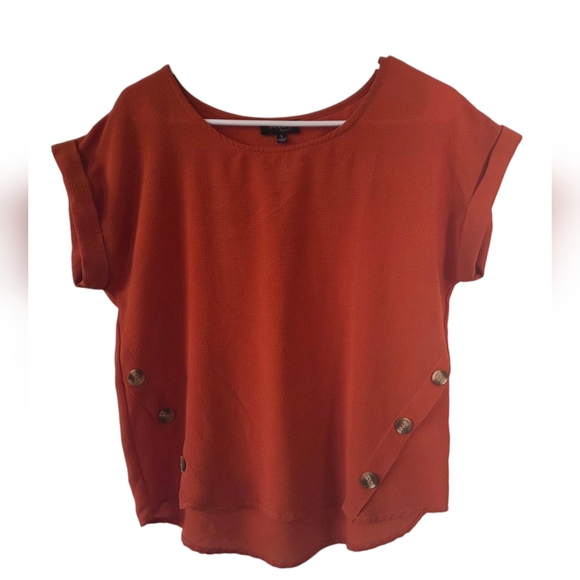 Elegant terracotta blouse featuring side button accents. Perfect for versatile styling.