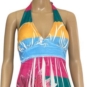 Love J Womens Size Large Halter Dress Sundress Colorful Hawaiian Pink Green Yellow Bling Stretch polyester, spandex There is some bling in front in the floral area