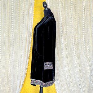 Gotta love some Johnny Was! Beautifully boho with the luxurious black velvet and colorful embroidery along the bottom and cuffs. Lightweight, perfect for layering!