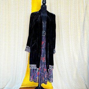 Love Johnny Was Black Velvet Silk Blend Embroidered Duster Cardigan Size L