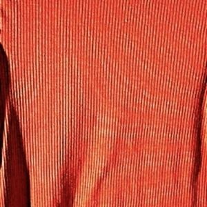 Love + Joy Med Peachy Coral Ribbed Knit Short Sleeves Peplum Mock Turtleneck