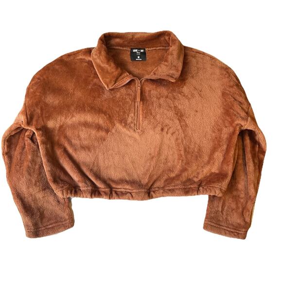 Love + Joy Women Sweatshirt M Brown Fleece Zipper Long Sleeve Crop Length