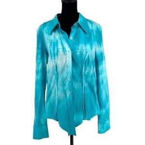Love Junkie Women’s Tie Dye Button Down Shirt Studded Cross Teal Size Large