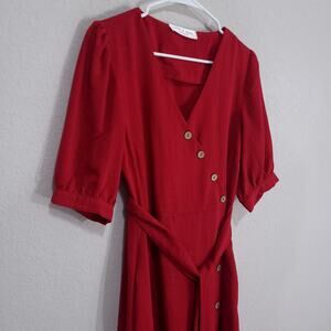 Love Kuza Dress Womens Small Red Midi Below Knee Cotton Linen Summer Office