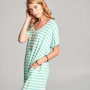 Love, Kuza Mint Oat Striped Maxi Dress Small