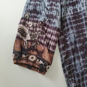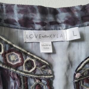 Love Kyla Tunic Top Womens Large Purple Blue Embroidered Boho Floral Blouse