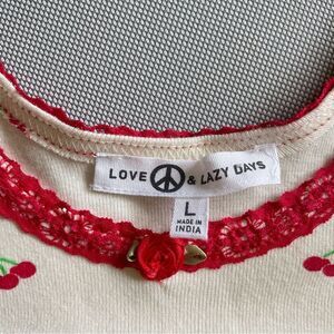 Love & Lazy Days Lacy Ruffled Cherry Crop Tank Top Women’s Size Large