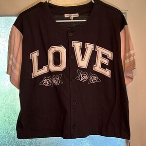 Love & Lazy Days Women’s Gray and Light Pink LOVE Athletic Style Crop Top Size M