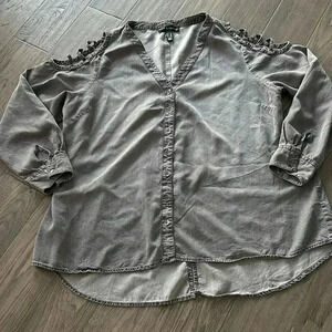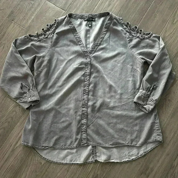 Love & Legend | Grey long sleeve peak a boo shoulder blouse