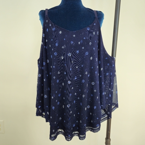 Love & Legend Top 3X Plus Size Blue Sleeveless Adjustable Straps Layered Fabric