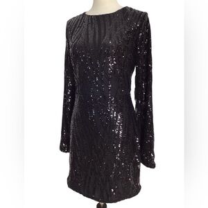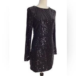 Love & Lemonade Black Sequin Long Sleeve Open Back Dress Size XL NWT