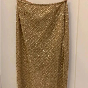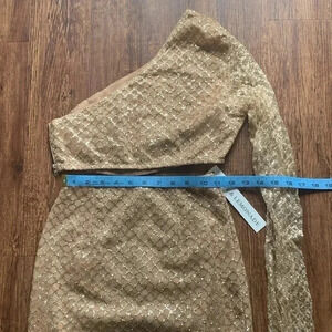 Love & Lemonade Gold Embellished BodyCon Long Dress One-Shoulder XS NWT