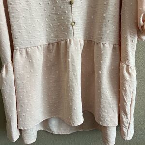 Love, Maven Curvy Pink Swiss Dot Peplum Ruffle Sleeve Top