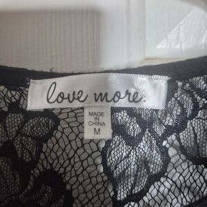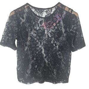 Love More Y2K Black Lace Top with Floral Embroidery Mesh See Through Size Medium