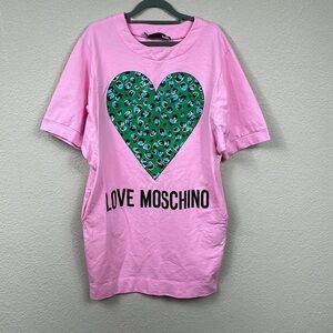 Love Moschino Abito Logo Tee T Shirt Dress in Pink Animal Print Heart Sz 4