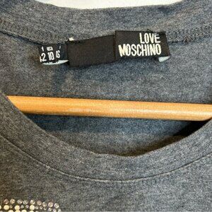 Love Moschino Crystal Design Short Sleeve Tee Shirt Grey