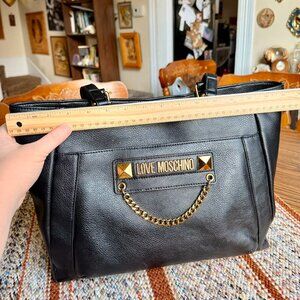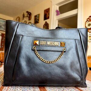 Love Moschino Faux Leather Tote with Gold Toned Hardware and Red Interior