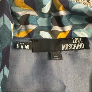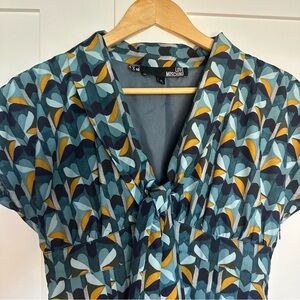 Love Moschino Geometric Print Knee Length A-line Dress 4 small teal 90’s pockets