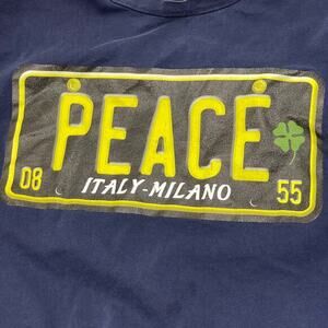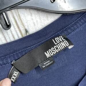 Love Moschino Men 3XL Peace T-Shirt Graphic Short Sleeve Crew Neck Blue STAINS