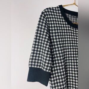50''s inspired wool and alpaca blend dress detailed with heart-shaped snap buttons on shoulder, solid colour ribbed edges and fitted silhouette.