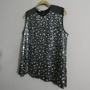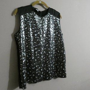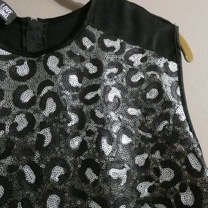 Love Moschino Women's Sz 10 Sequin Tank Sleeveless Black Leopard Print Zipper Back