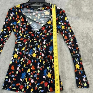 Love Moschino Top Womens 2 Black Printed Long Sleeve Surplice Blouse Floral