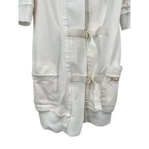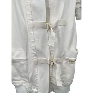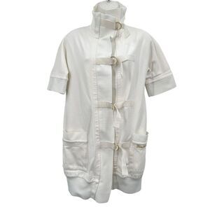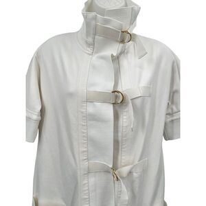 Love Moschino Tunic Top Women Size 4 White Short Sleeve Strap Closure High Neck