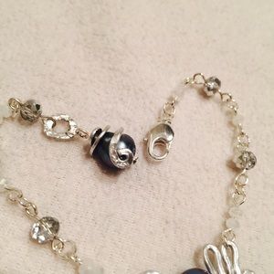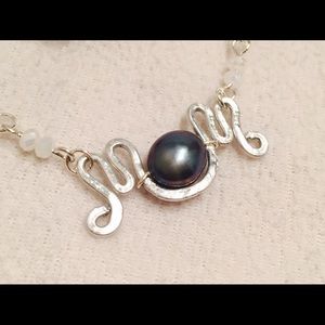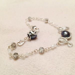 Authentic Freshwater metallic black color pearls with Bicone crystals on silver wire.