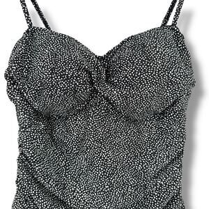 Love My Curves Polka Dot Swim Dress Bathing Suit Womens Size 16 Ruched Waist