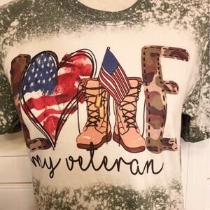Love My Veteran Sublimated Bleach Dye Handmade Graphic Tee
