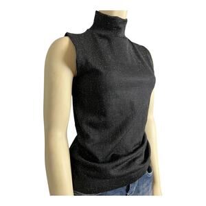 Love Nation Sleeveless Metallic Black Blouse Shirt Top High Neck 1XL 2XL Plus