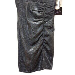 Love Nicki Lew Gunmetal Glitter Ruched Mini Bodycon Cocktail Dress XS Event