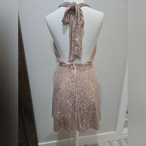 Love Nickie Lew Sequin Mock Neck Cocktail Dress NWOT size Small Rose Gold